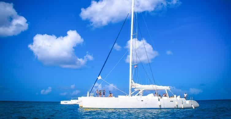 At 2:35 PM, it’s time to return. Board a lively catamaran that will take you back to Bayahibe. The atmosphere on board is festive, with music and dancing creating a fun-filled ambiance as you sail back over the tranquil waters for about 1.5 hours.